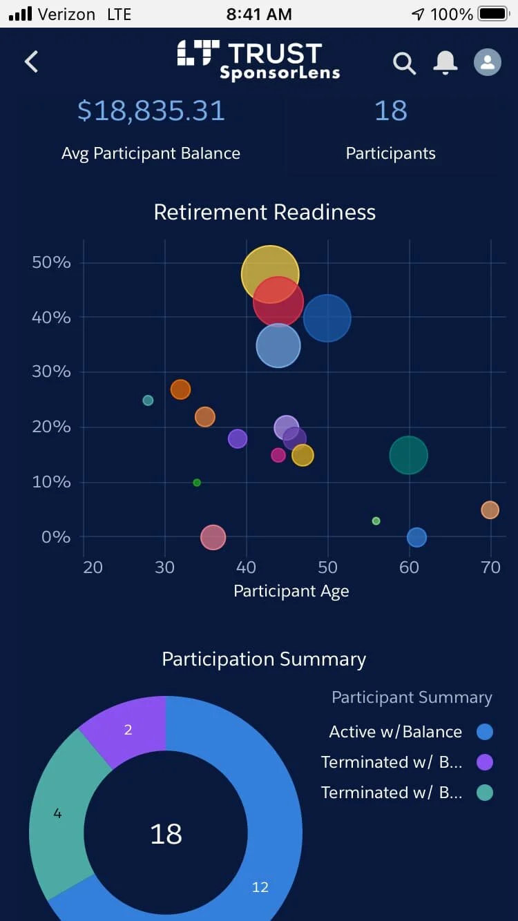 LT Trust mobile apps offer push notifications and 24/7 access right from your phone! LT Trust is one of the first 401(k) recordkeepers to deliver a state-of-the-art mobile app experience to all 401(k) stakeholders: Participants, Plan Sponsors, & Advisors. Whether you're on the go or unable to get to your computer, the LT Trust mobile apps are a great way to take control of your 401(k) and manage your retirement assets right from the palm of your hand!
