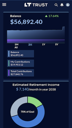 LT Trust is excited to provide our industry-leading 401(k) technology. Developed by our award-winning team, to equip plan sponsors, participants, and individuals with the tools they need to take the necessary steps in the retirement process. All the advice and activity that you see in your account portal were researched and implemented by the team at LT Trust. On top of that, we are constantly looking for improvements and recommendations on how we can better serve you.